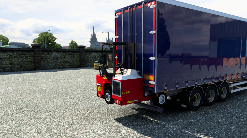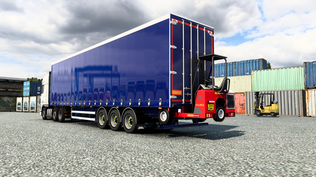 UK style SDC curtainside trailer with moffet forklift on the back. Very detailed mod with customization. 9 different real life company skins to choose from. The trailer is skinable. Works on all versions!